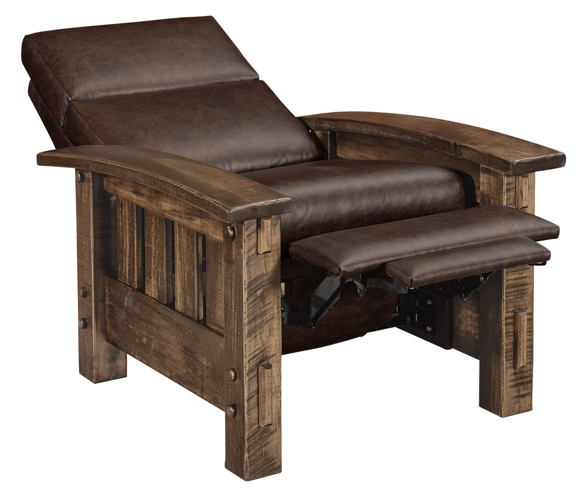 Houston Recliner RS05 HR Houston Recliner Dimensions: 34.5"w x 39"d x 41"h Seat: 23"w x 20"d x 19"h Full Recline Length: 68" Wall Clearance: 18" Push Back Recline Shown in Texas Leather and Roughsawn Brown Maple with Almond (D22N11670) 10-Sheen