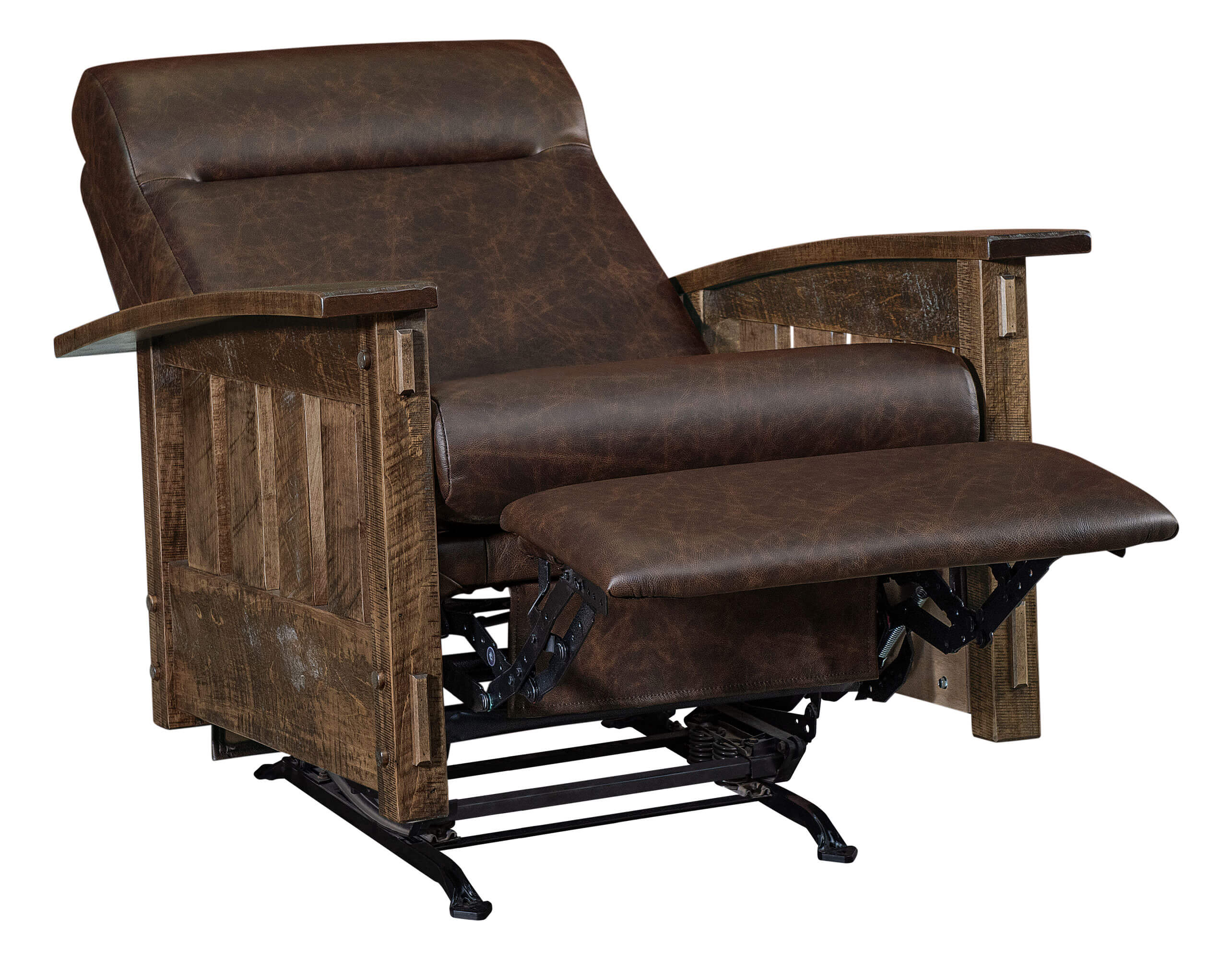 Houston Rocker Recliner RS18 HRR Houston Rocker Recliner Dimensions: 33"w x 38"d x 40.5"h Arm: 24"h Seat: 23.5"w x 20"d x 19.5"h Full Recline Length: 66" Wall Clearance: 15" Inside Handle Recline Shown in Texas Leather and Roughsawn Brown Maple with Almond (D22N11670) 10-Sheen