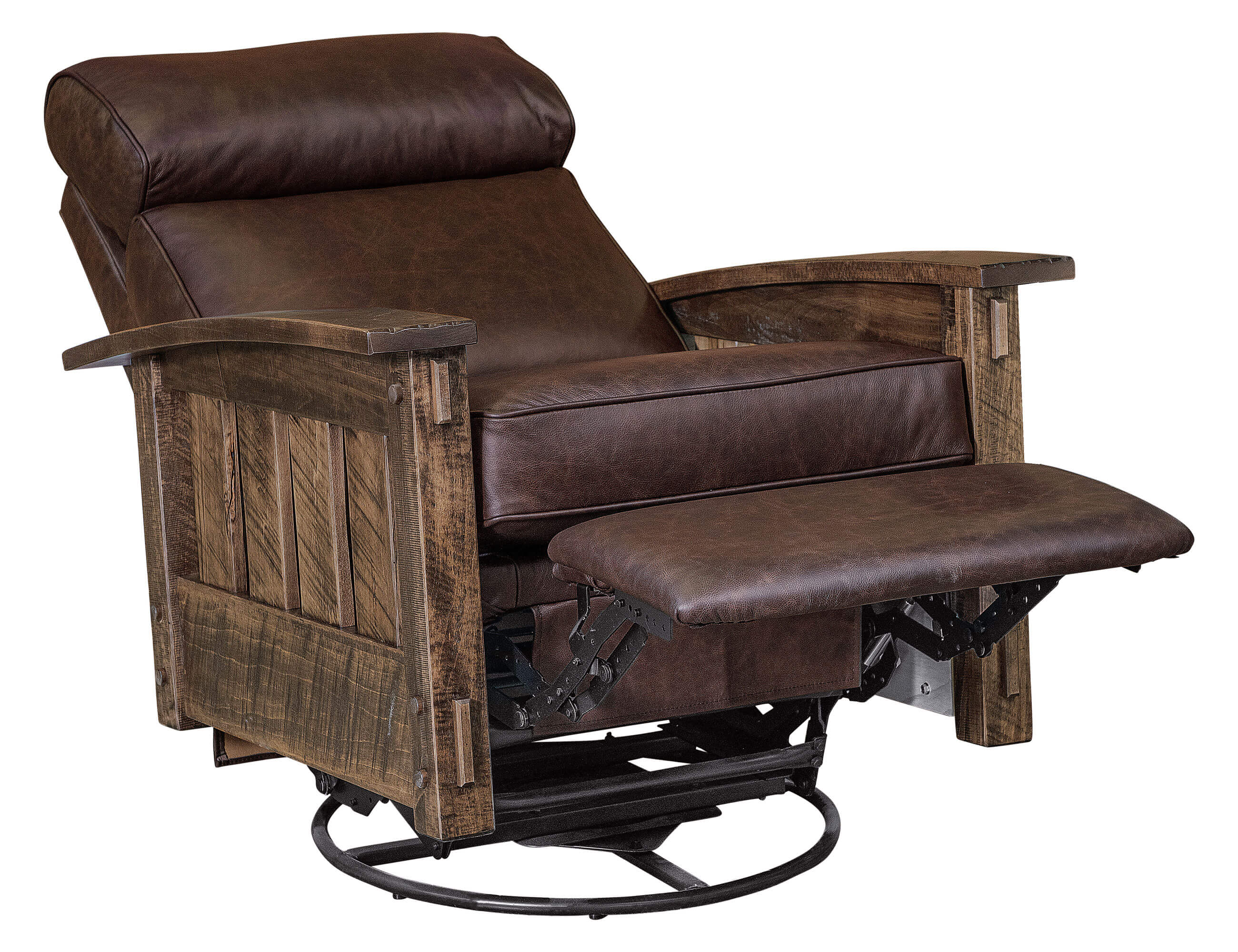 Houston Stockton Swivel Rocker Recliner RS22 HSSRR Houston Stockton Swivel Rocker Recliner Dimensions: 33"w x 38"d x 43.5"h Arm: 25"h Seat: 23.5"w x 18"d x 22"h Full Recline Length: 66" Wall Clearance: 15" Inside Handle Recline Shown in Texas Leather and Roughsawn Brown Maple with Almond (D22N11670) 10-Sheen