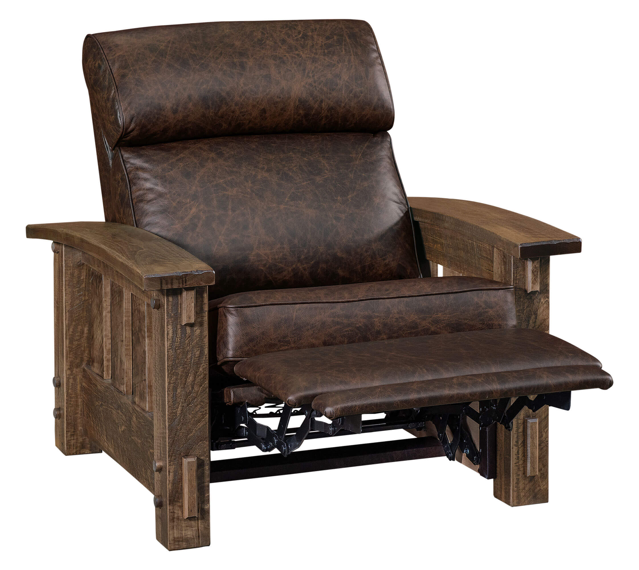 Houston Stockton WH Chair Recliner RS14 HSCR Houston Stockton WH Chair Recliner Dimensions: 39"w x 40"d x 43"h Arm: 24"h Seat: 27"w x 19"d x 21"h Full Recline Length: 66" Wall Clearance: 2" WH = Wall Hugger Mechanism Inside Handle Recline Shown in Texas Leather and Roughsawn Brown Maple with Almond (D22N11670) 10-Sheen