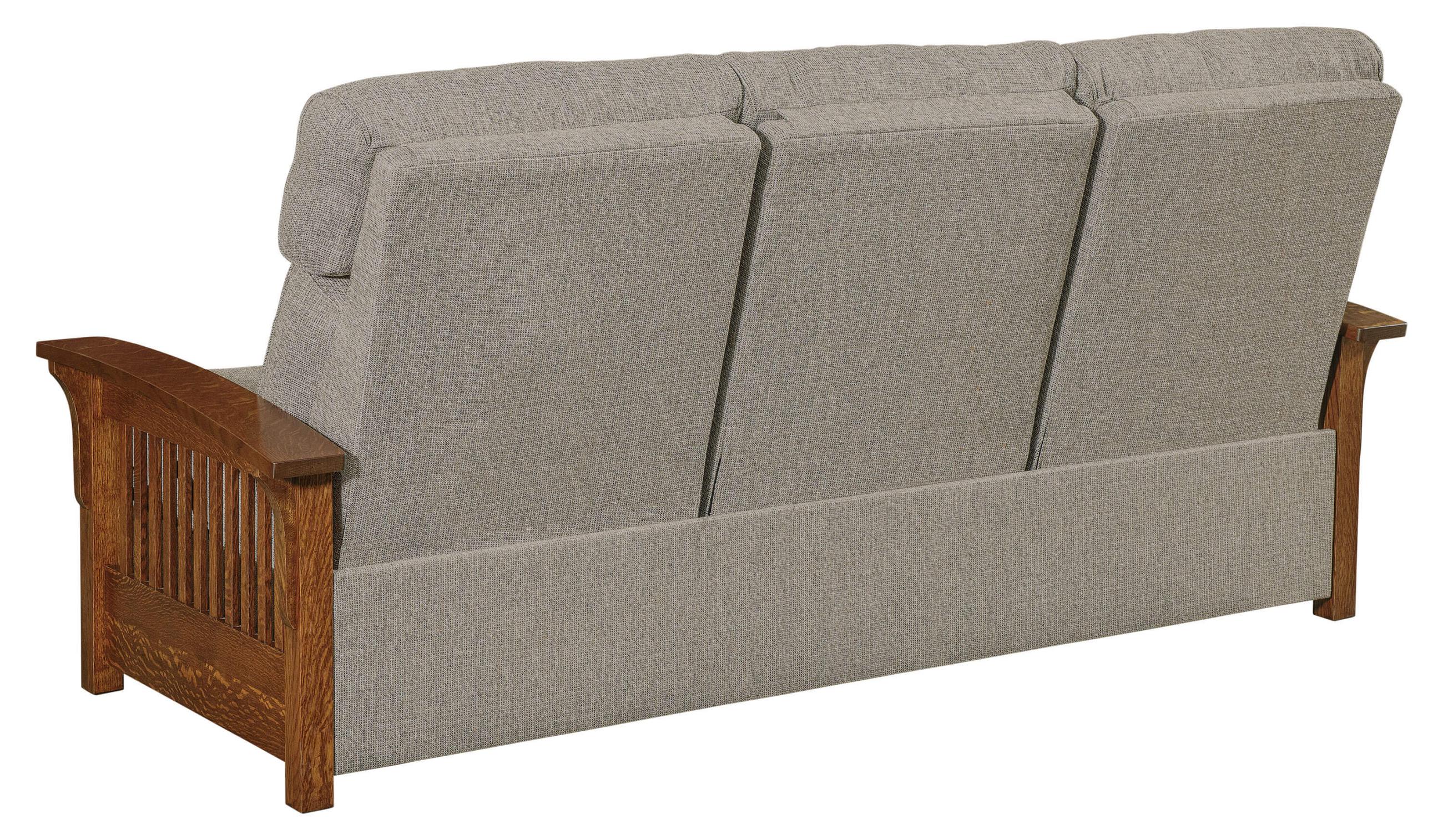 Stockton WH Sofa Recliner 523 SSR Stockton WH Sofa Recliner Dimensions: 88"w x 38"d x 43"h Arm: 23.5"h Seat: 79"w x 19"d x 21"h (springs standard) Full Recline Length: 66" Wall Clearance: 2" WH = Wall Hugger Mechanism Inside Handle Recline Shown in R1-100 Kitty Fabric and Quarter Sawn White Oak with Michael’s Cherry